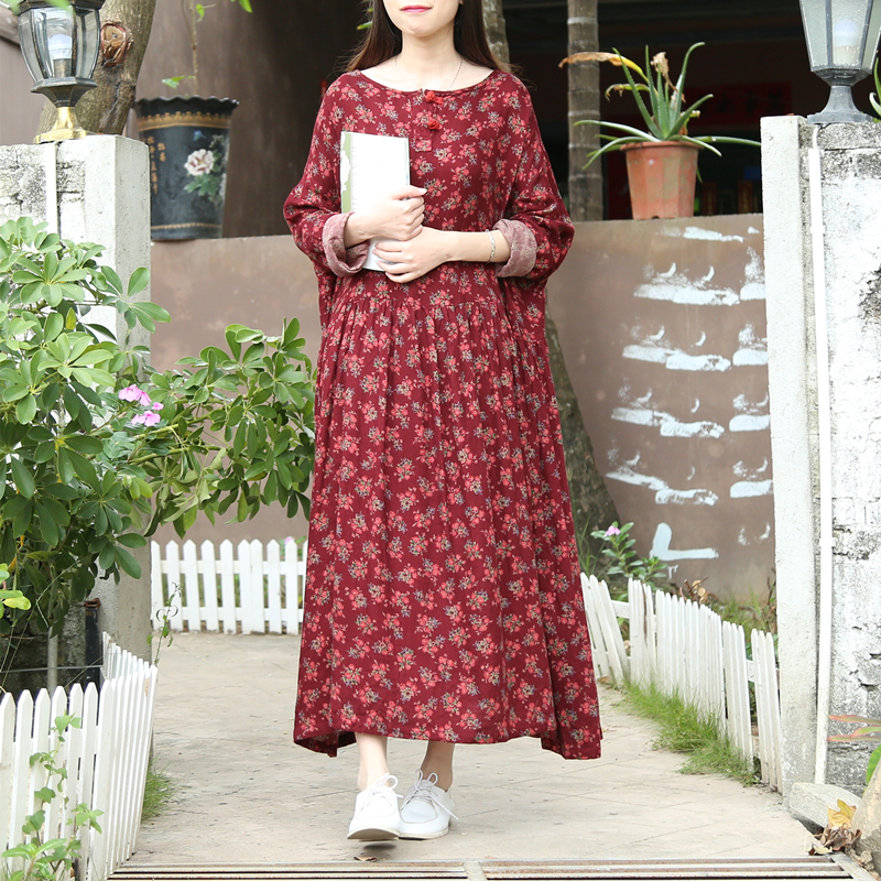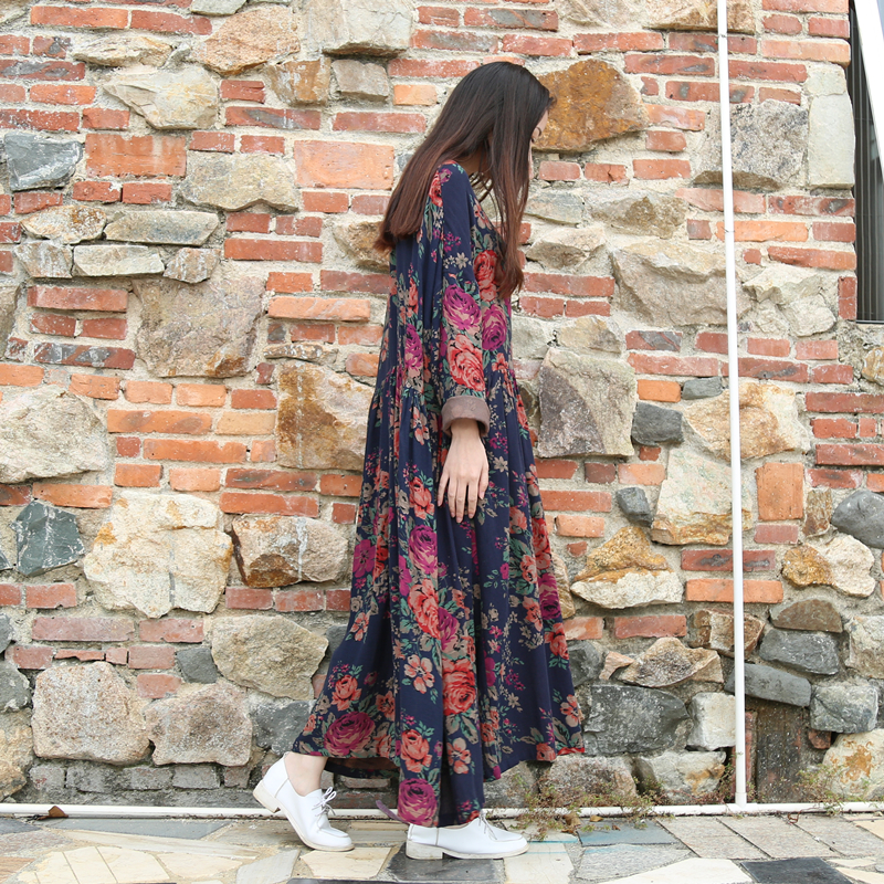 2020 Spring Fall Mori Girl Swing Dress Cotton Women Long Dresses Floral Gown Plus Size Vintage Robe Longues Boho Vestido Jurken