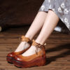 2020 Spring Genuine Leather Women Pumps Platform Wedges Round Toes Ankle Strap Back Zip High Heel Women Shoes