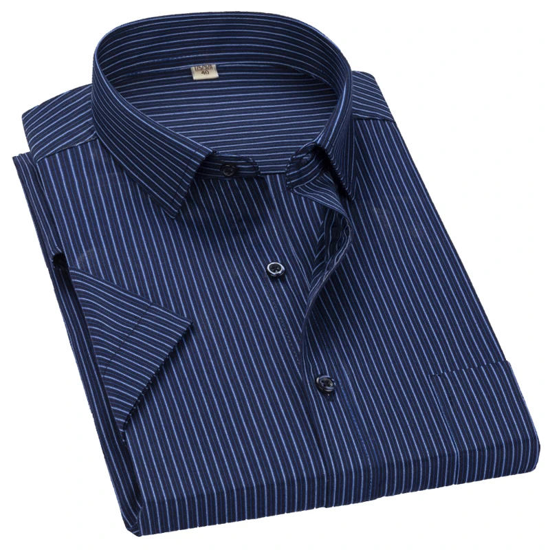 Buy 2022 Plus Size 8xL 7XL 6XL Men’s Business Short Sleeve Fomal Shirts Man Striped Summer Work Dress Shirt Soft White