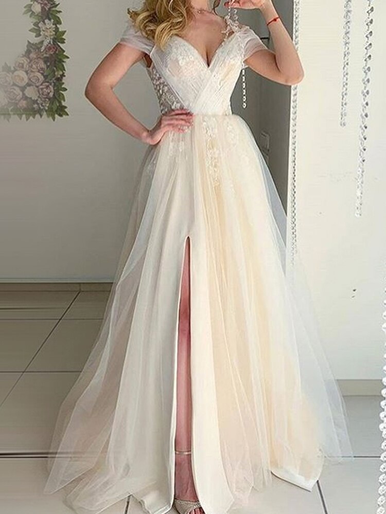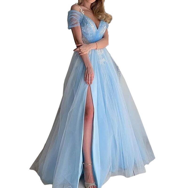 2022 Summer for Women Prom Party Dresses Slit Wedding Vestido Sexy Sling Appliques Lace Evening Robe Ball Gown