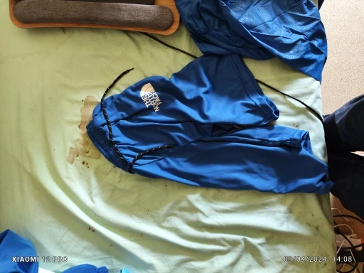 Pants are very small and with a different color, all synthetic, bad
