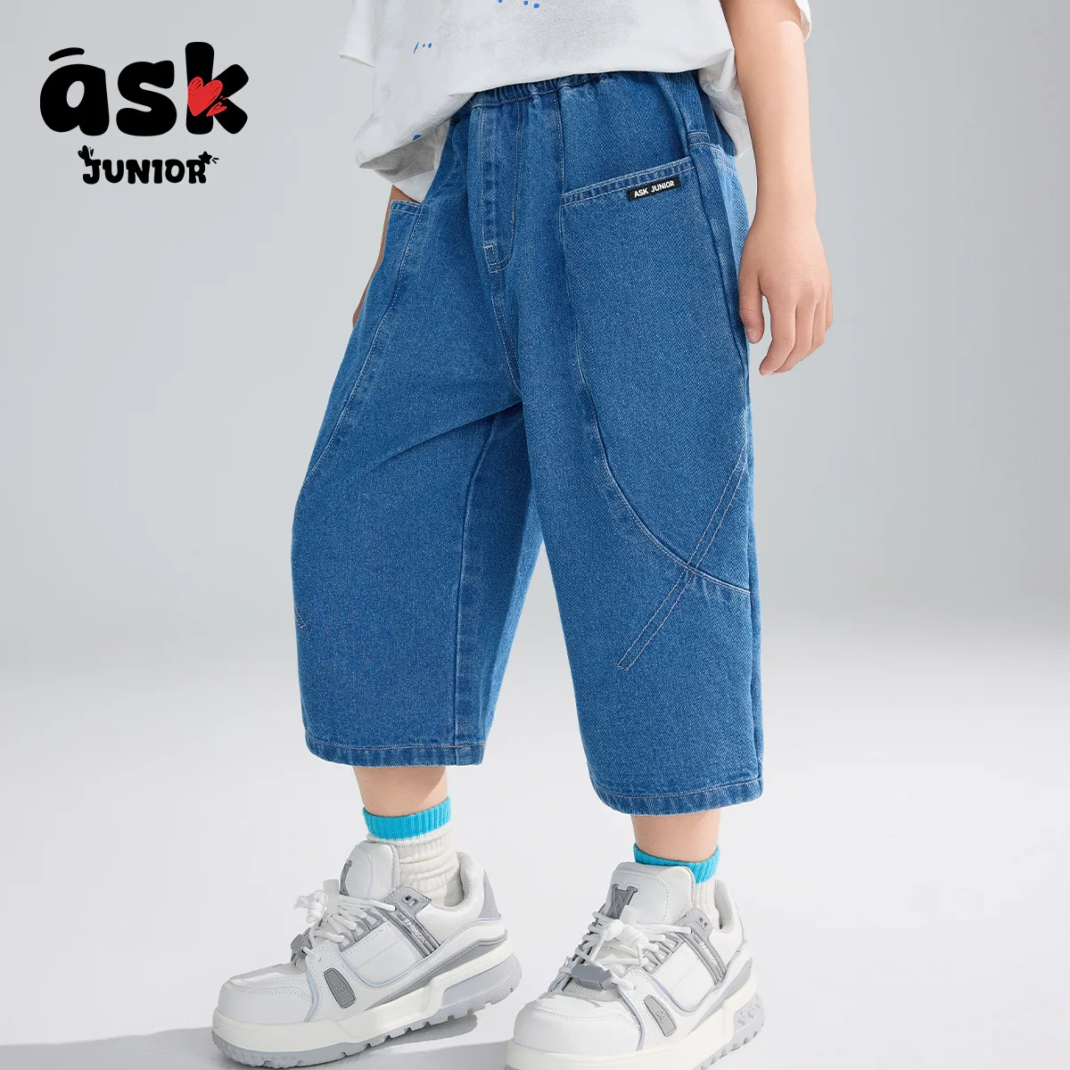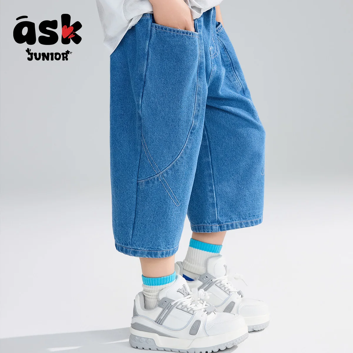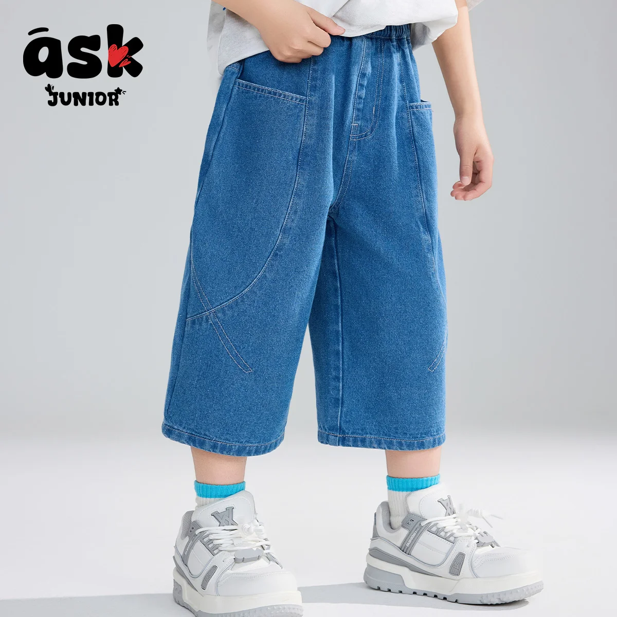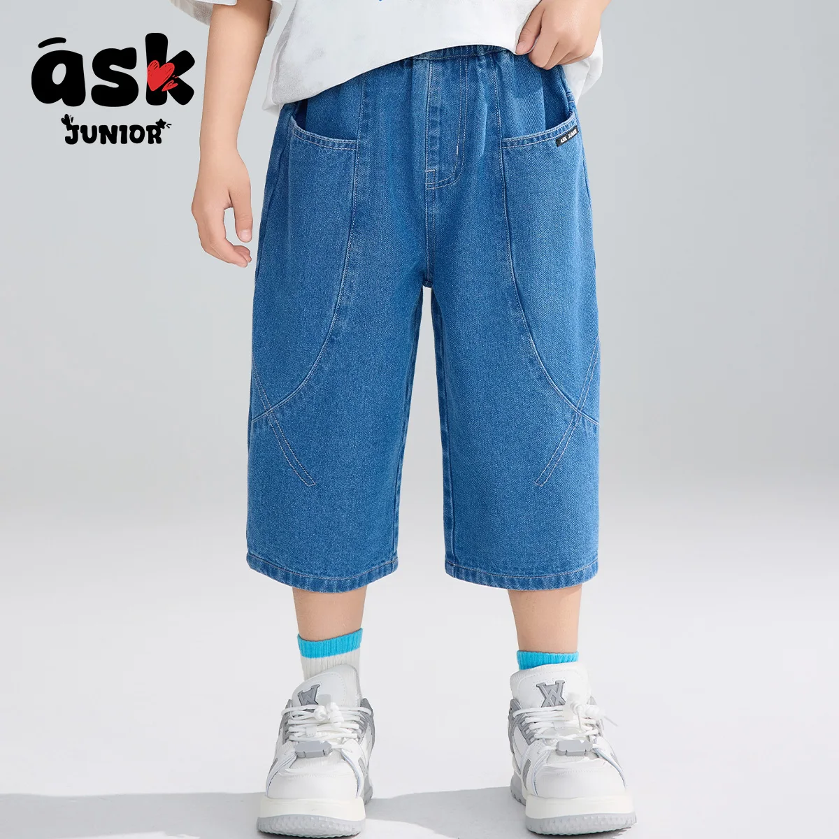 Buy Children’s summer middle-aged and older children’s teenagers’ cropped pants, casual pants, boys’ skin-friendly soft jeans