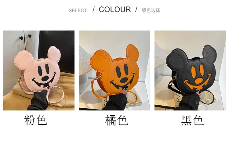 BagsDisney Mickey Creative Shoulder Bag Personalized Niche Halloween Pumpkin Funny Women’s Bag PU Crossbody Bag Cartoon Bag