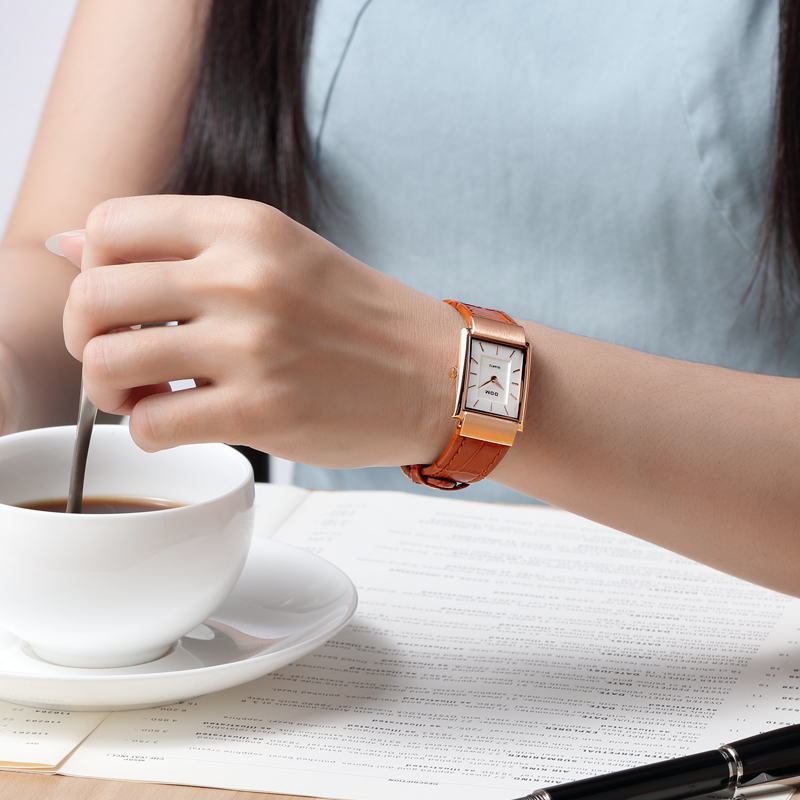 DOM women leather gold watch luxury brand waterproof style quartz Square watches G-1089