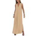 Womens Summer Solid Elegant Long Dress Casual Basic O Neck Sleeveless Split Maxi Long Dress Ladies Temperament Long Slit Dresses