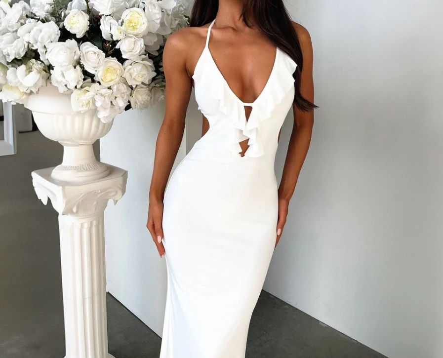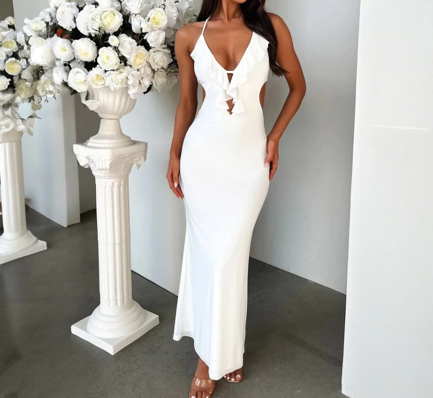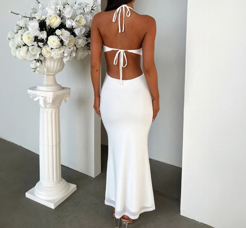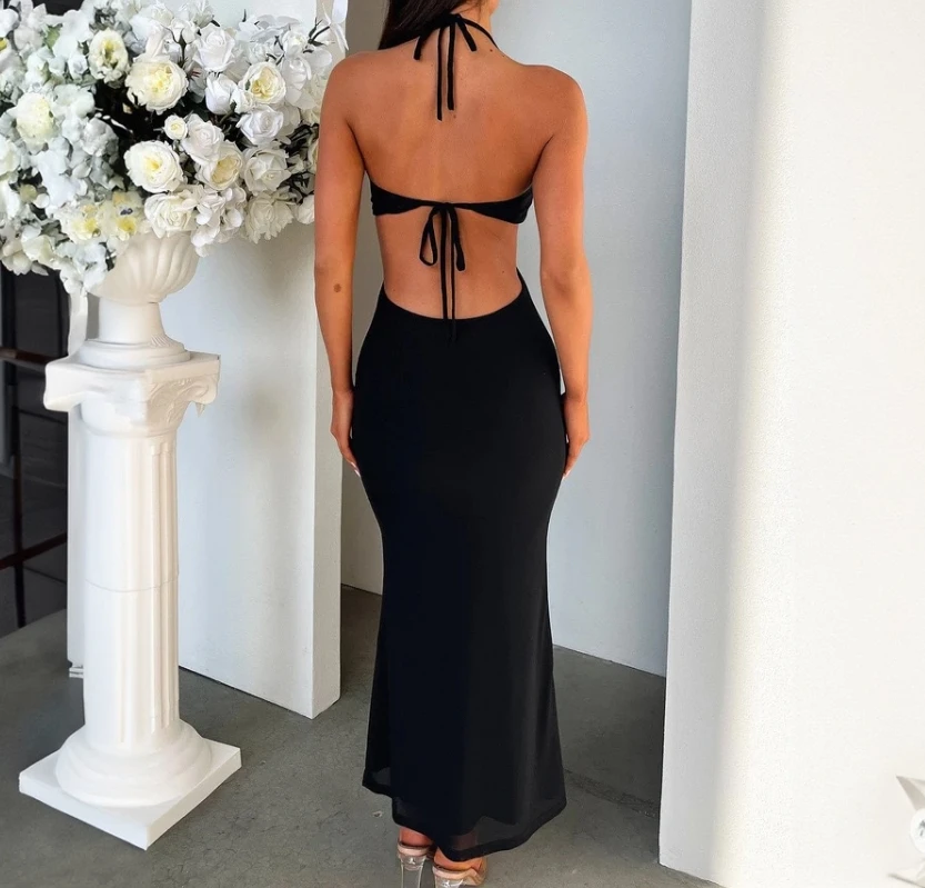 Elegant Women’s Party Dresses Sexy V-Neck Hanging Neck Strap Backless Strap Dress Basic Versatile Minimalist Fishtail Long Dress