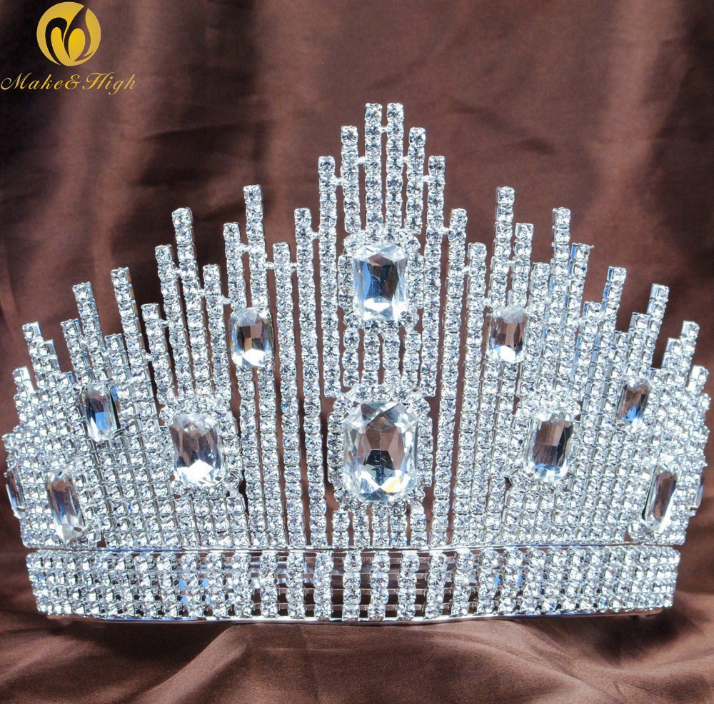Fantastic Wedding Bridal Tiara Miss Beauty Pageant Crown Clear Rhinestones Crystals Large Headband Hair Jewelry