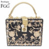 Floral Crystal Women Evening Totes Bag Black Acrylic Clutches Shoulder Handbags Crossbody Bags Hardcase Ladies Box Clutch Bag