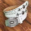Genuine Leather Cowboy Belt Buckle Vintage Metal Rivet Punk White Belts For Men Cross Rock Jeans Belt Ceinture Homme MBT0171