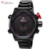 Gulper SHARK Sport Watch Series Digital LED Stainless Full Steel Black Red Date Day Alarm Men’s Quartz Military Watches / SH105 Description: – We focus on the manufacturing process. Every part of every shark watch is meticulous and durable. – We combined the graduation and dial with 3D design. The visual area of the dial is bigger and clearer. – Innovative big button, easy to press. – Day and Date with LED display. – Durable gears and material. – Alarm function Main Features: – Gulper Shark Series – Designed by renowned Italian Watch Designer "Mr. Leonardo Cristiano". – High precision quartz movement with the latest breakthrough Technology. – Specially designed with Big Case. – Water Resistant (Not suitable for swimming, diving, shower etc.). – 12-month International Guarantee Specification (approximate): – Case Diameter: 5.0cm (1.97 inch) approx. – Case Thickness: 1.5cm (0.59 inch) approx. – Case Material: Stainless Steel – Band Length: 18cm (7.09 inch) approx. – Band Material: Stainless Steel – Band Adjustable: Yes Package Included: – 1 x Genuine Shark Watch – 1 x Official Gift Box with 12-month Guarantee Card