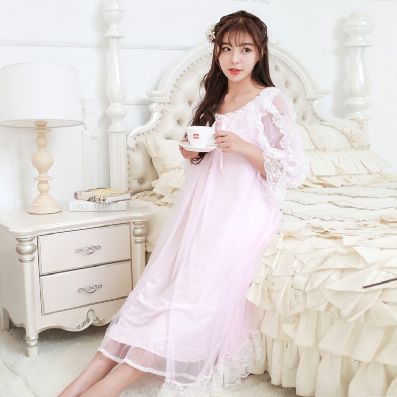 Lace Robe Set Spring Nightgown Two-piece Robe Set For Women Long-sleeved nightdress Sweet Princess Sleepwear Home Dress 9013