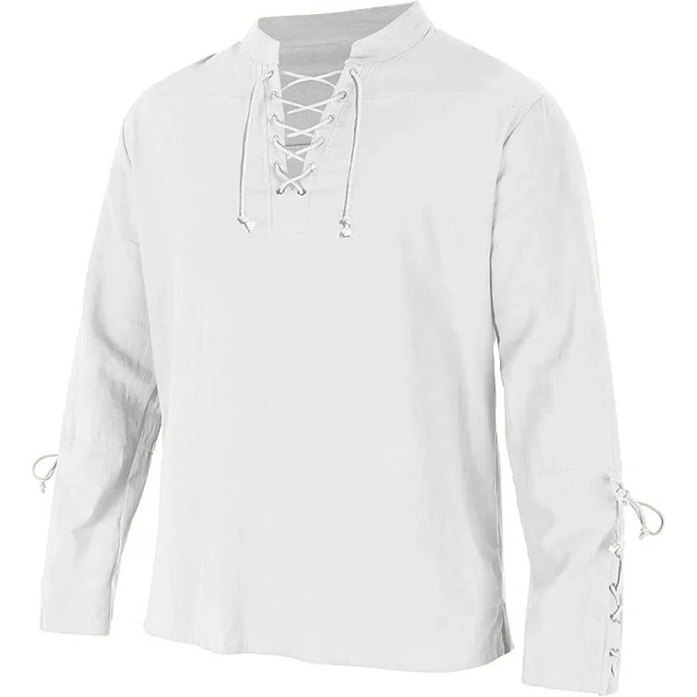 Name: Men’s Long Sleeve Shirts Lace Up V-neck Cuff Medieval Pirate Dress Up Streetwear Halloween Gothic Punk Style Men’s Clothing