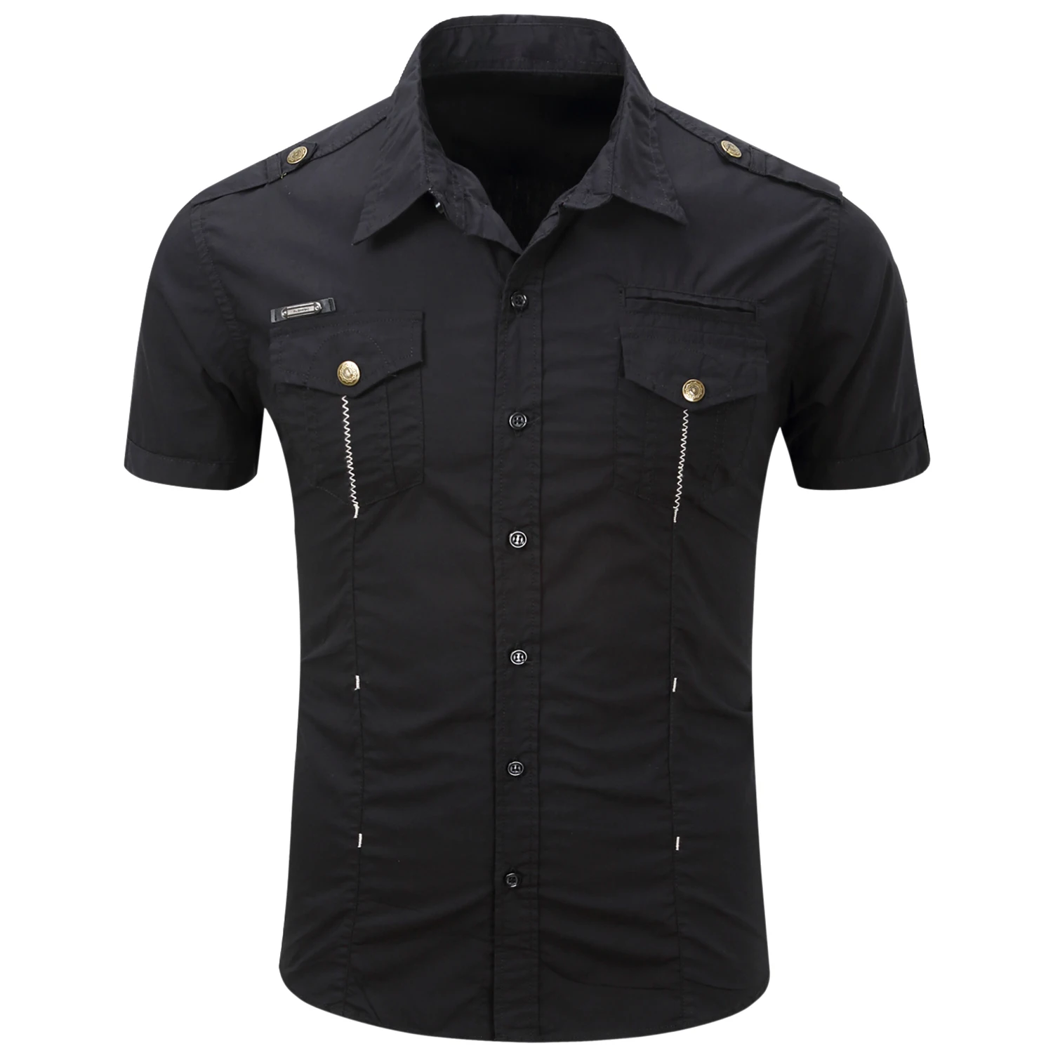 Buy New Fashion 2025 Men’s Casual 100% Cotton Military Tactical Shirt Summer Short Sleeve Solid Color Cargo Work Shirts with Pocket