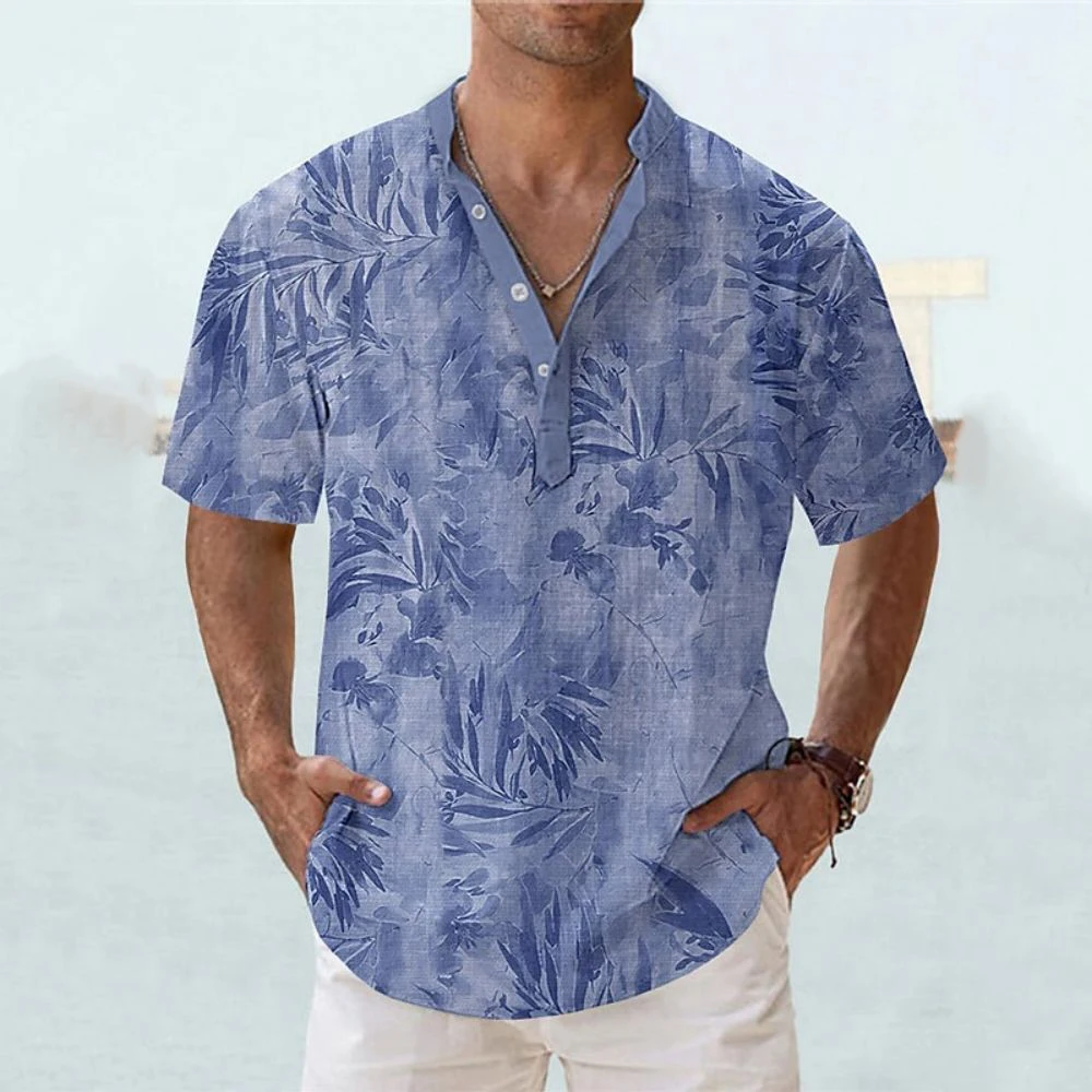 New Flower 3D Print Henley Shirts Men’s Fashion Floral Oversized Button Stand Collar Short Sleeve T Shirt Tees Tops Man Clothing