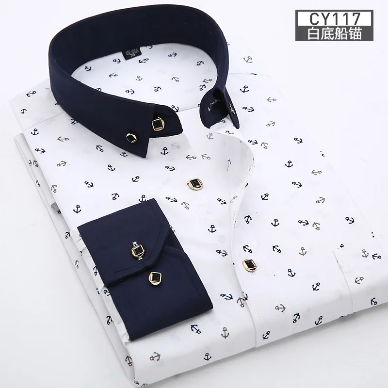 Buy New men’s shirt Thin long-sleeved printed spring/summer non-ironing business casual slim slim fashion breathable shirt