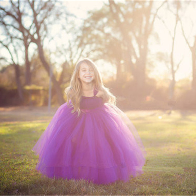 Purple,Gray Flower Girl Dresses Cute Kids Party Pageant Wedding Bridesmaid Bridal Tulle Tutu Dresses Princess Ball Gown 2-14 Y