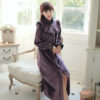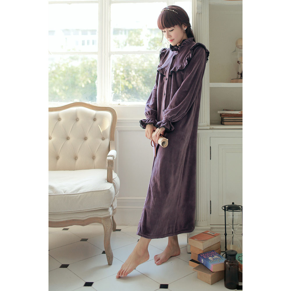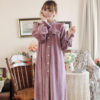 Retro Princess Bathrobe Autumn Winter Velvet Women Robes Noble Purple Long-Sleeved Nightgowns Ruffles Collar Sleeping Dress